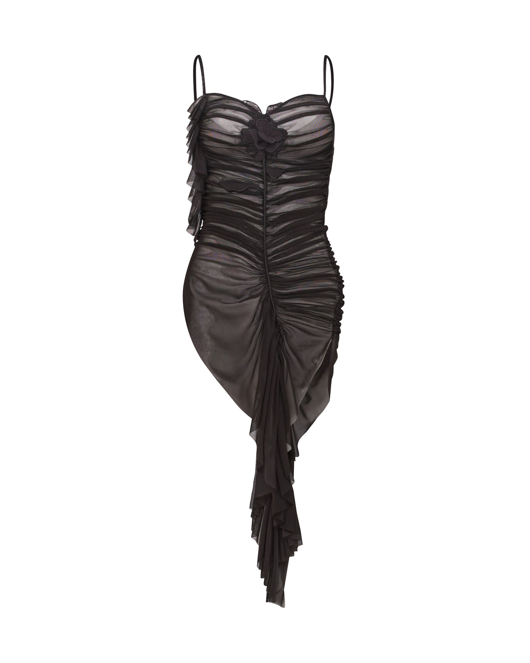 LACE ROSE EMBROIDERED RUCHED MINI DRESS