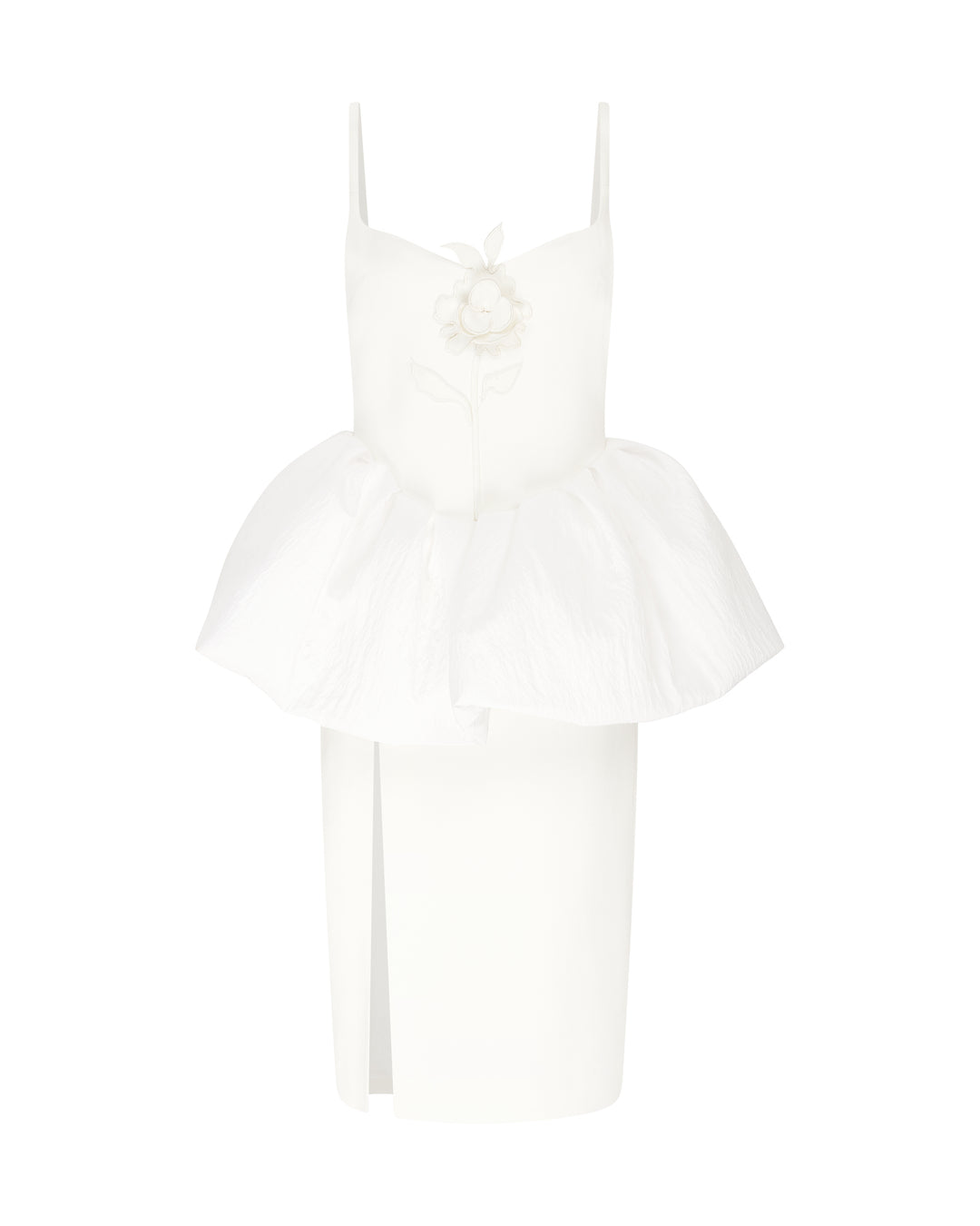 LACE FLOWER CORSET ASYMMETRIC MIDI DRESS