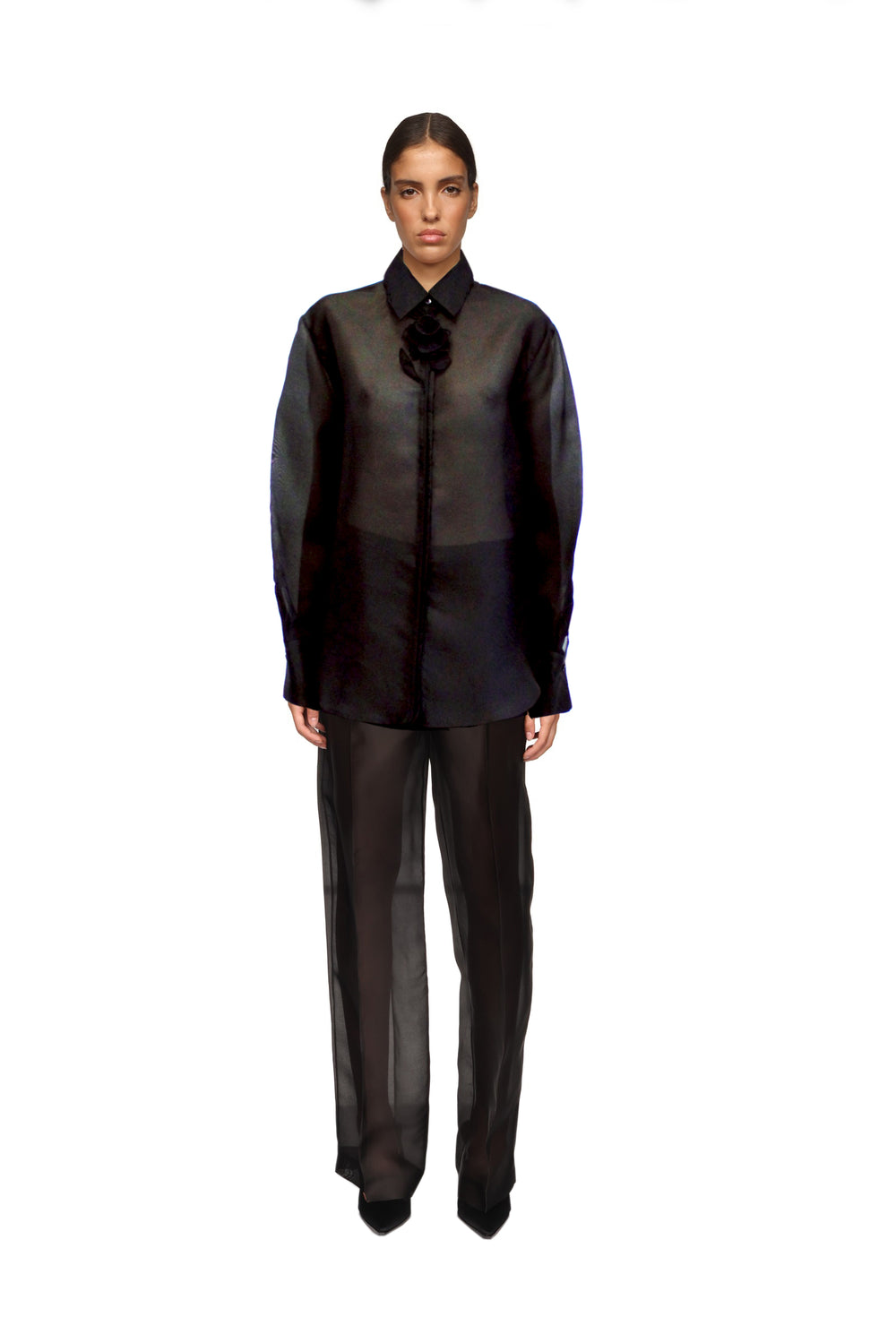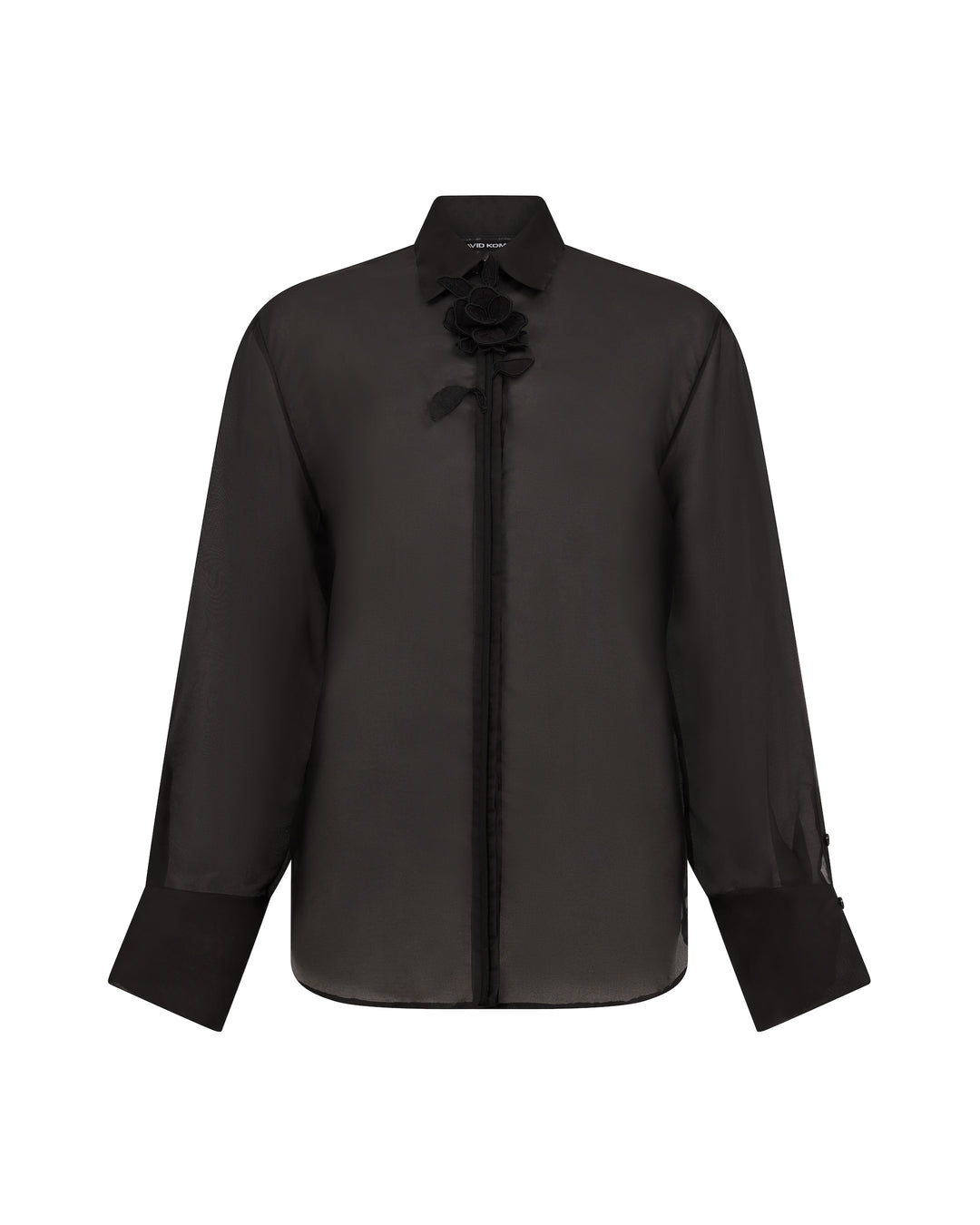 ORGANZA SHIRT WITH LACE ROSE IN BLACK