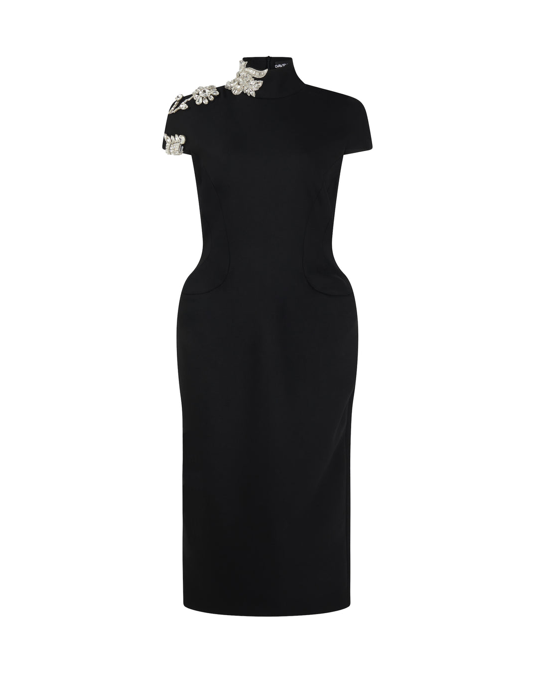 CRYSTAL BROOCH MIDI DRESS WITH PADDED HIPS