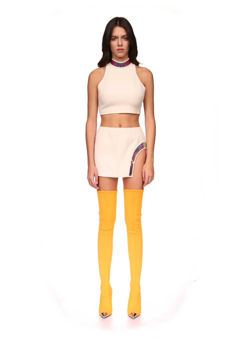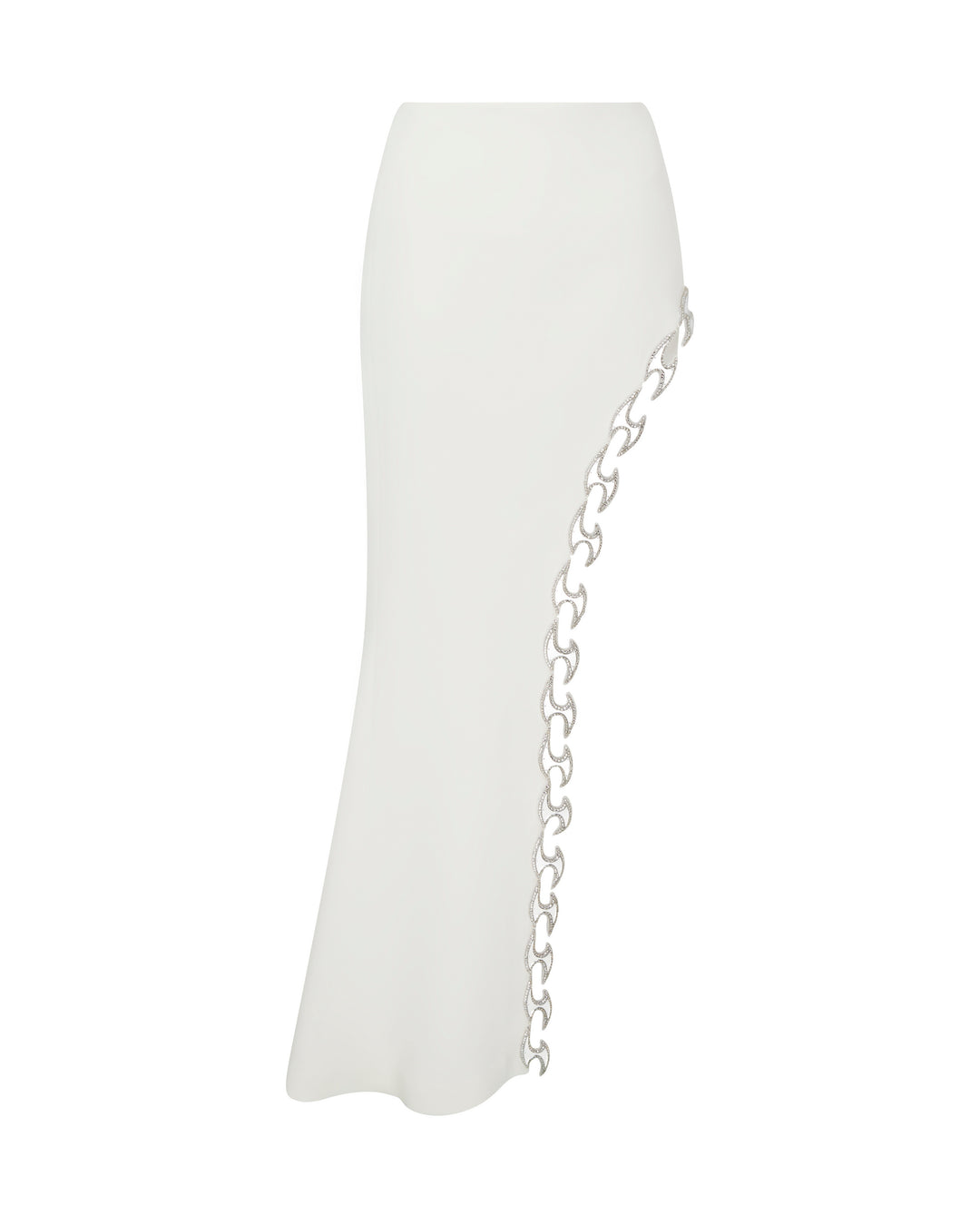 CRYSTAL FISH HOOK OPEN LEG SKIRT IN WHITE