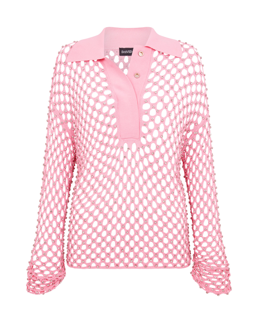 CRYSTAL EMBELLISHED KNIT JUMPER IN PINK