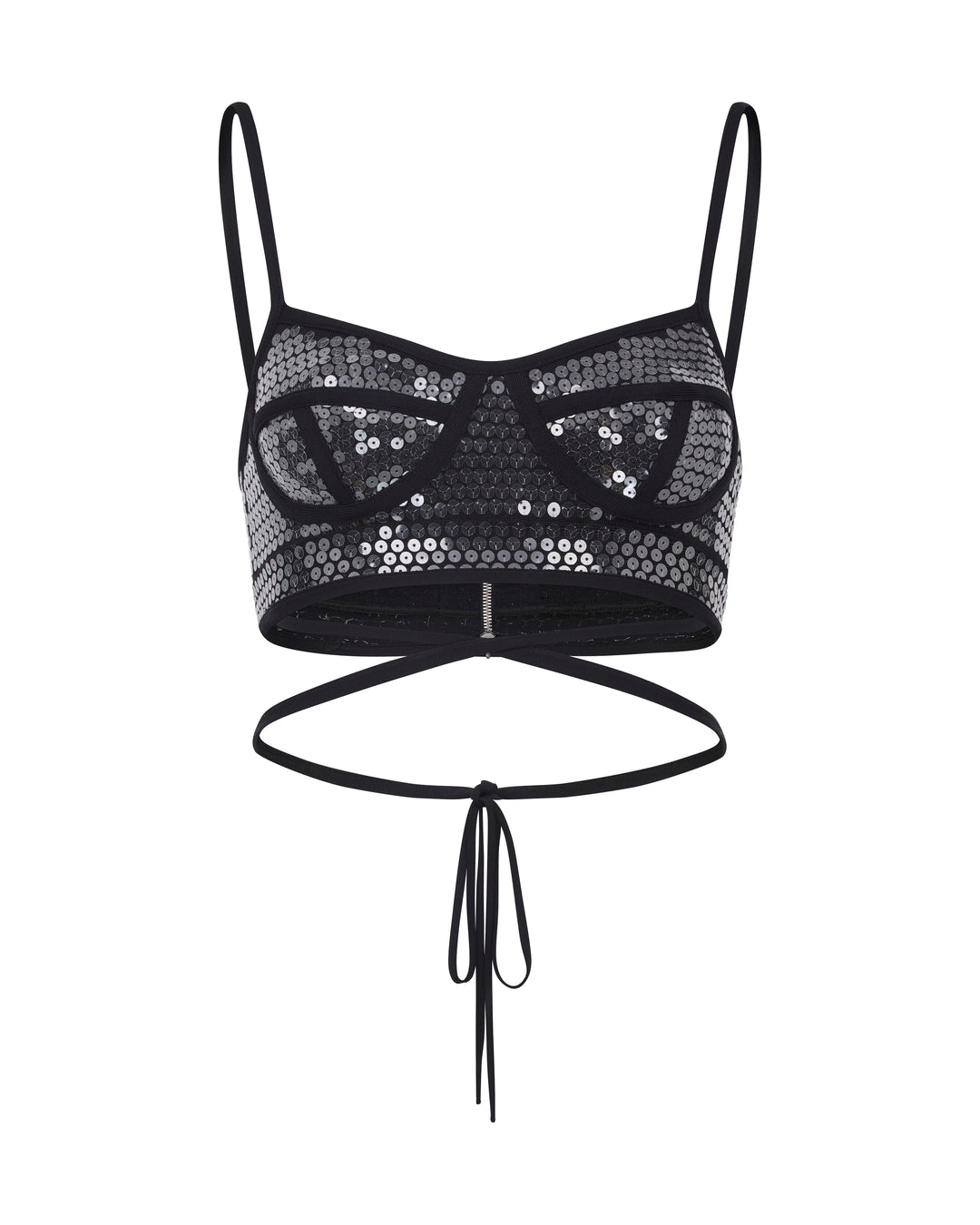 BOUCLE AND CRYSTAL CHAIN CROP TOP