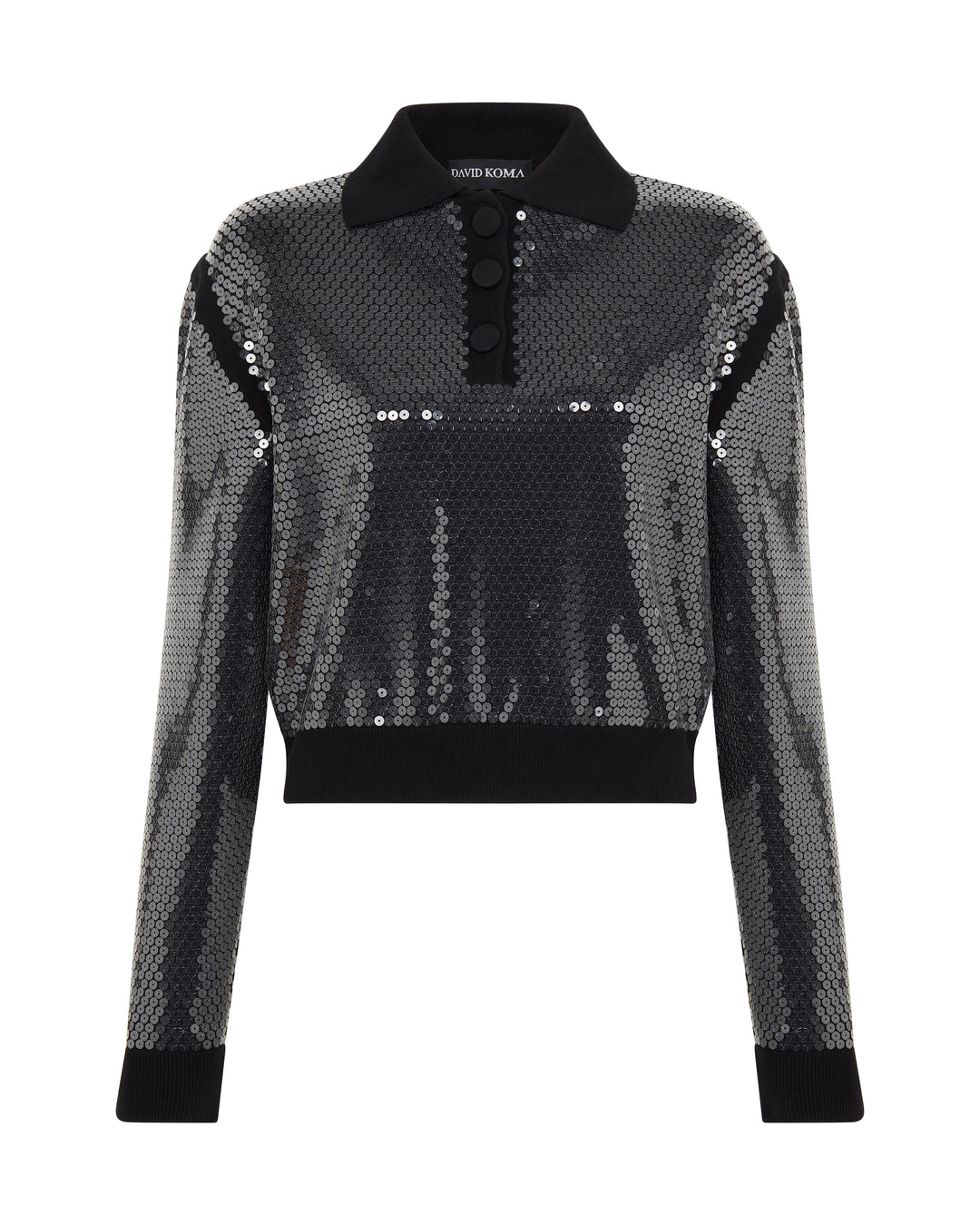 CRYSTAL EMBROIDERED POLO KNIT TOP