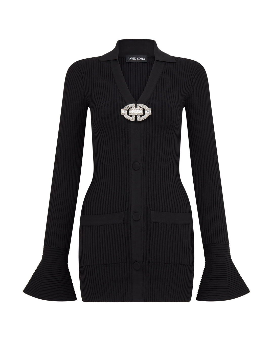 KNITTED CRYSTAL BUCKLE CARDIGAN