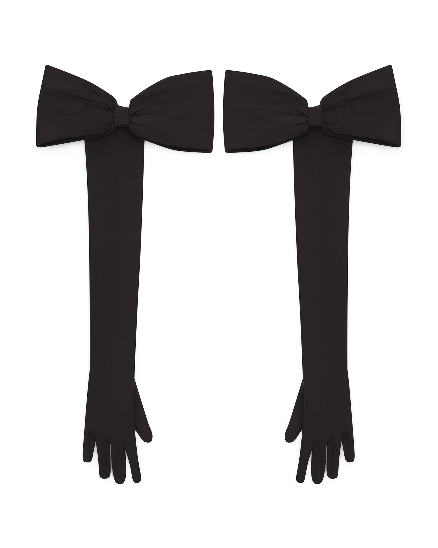 Made in Italy with a black cotton jersey, these long gloves have a bow detail at the top.